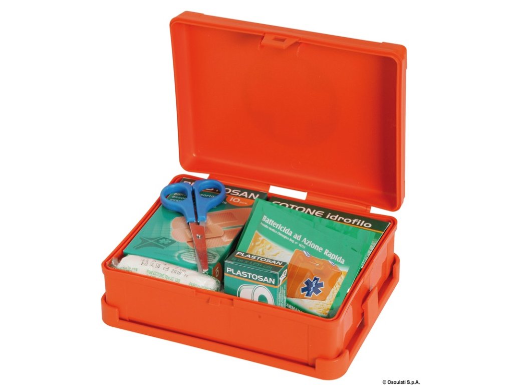Obsahuje 11 položiek prvej pomoci. Veľkosť: 13x18x7cm.