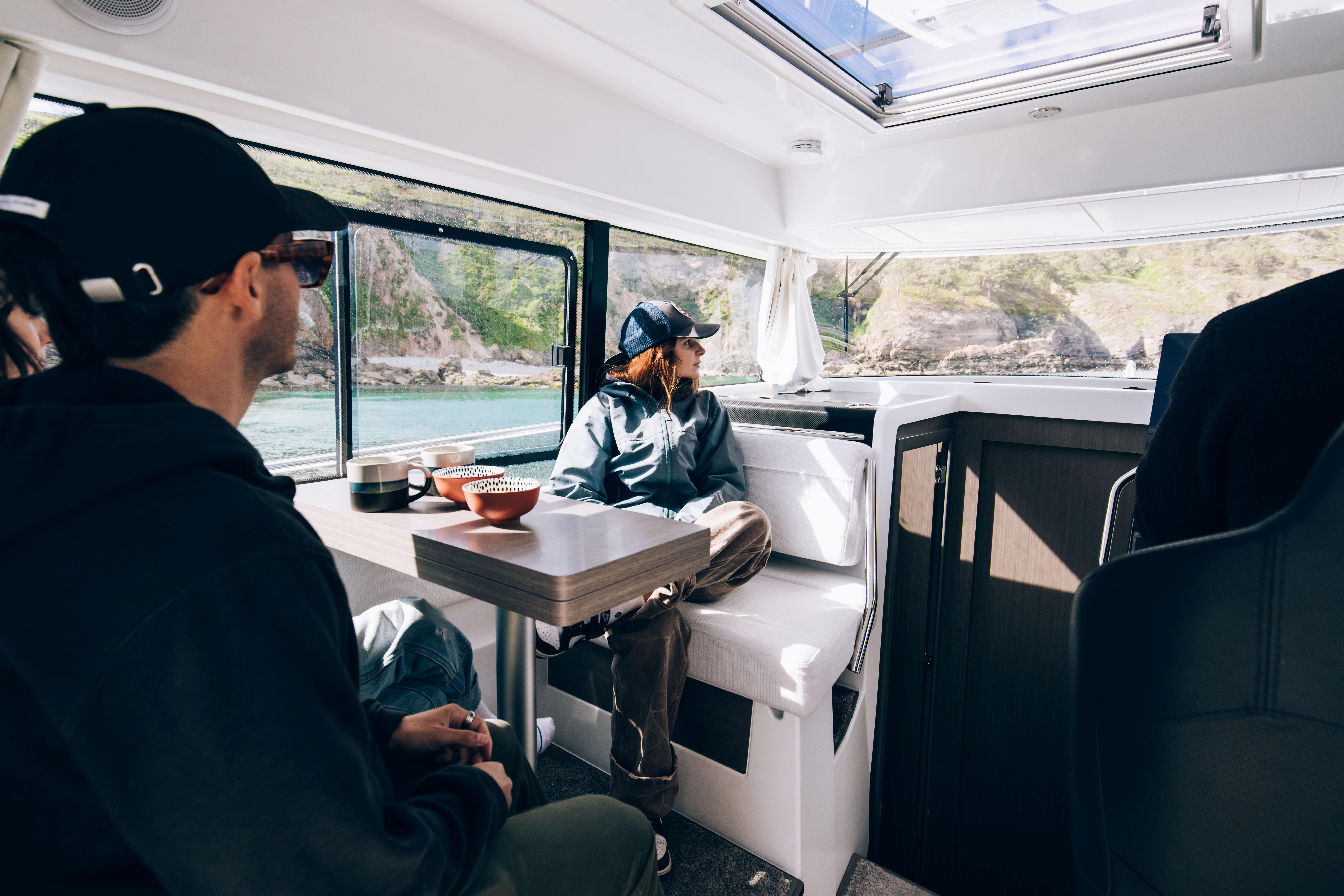 Veľkou výhodou je uzavretá kabína, vďaka ktorej si môžete užiť dlhšiu sezónu na vode. Od jari do jesene už prosto netreba toľko riešiť predpovede počasia. Aj keď trocha spŕchne, vy budete dážď pozorovať z pohodlia interiéru.