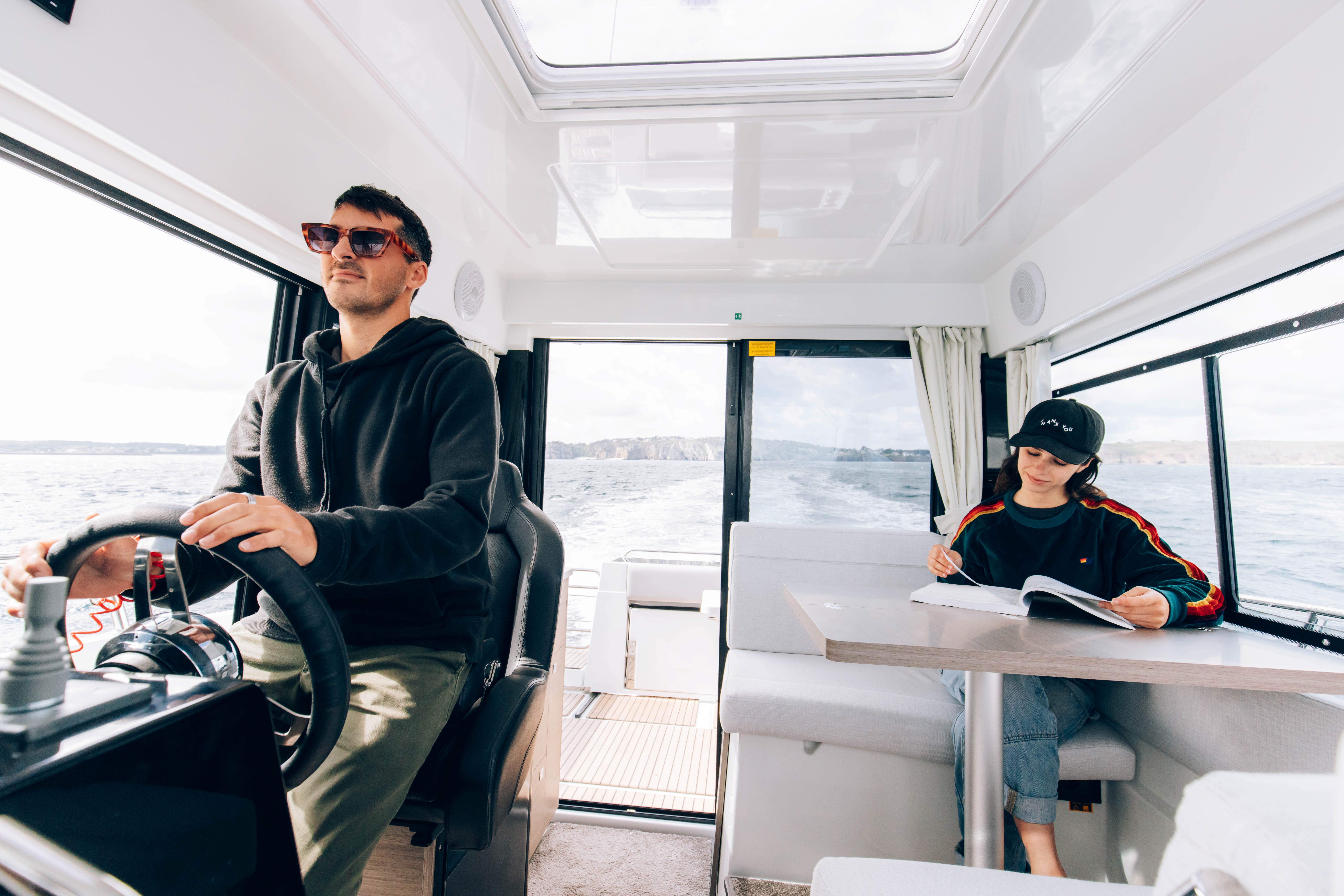 Veľkou výhodou je uzavretá kabína, vďaka ktorej si môžete užiť dlhšiu sezónu na vode. Od jari do jesene už prosto netreba toľko riešiť predpovede počasia. Aj keď trocha spŕchne, vy budete dážď pozorovať z pohodlia interiéru.