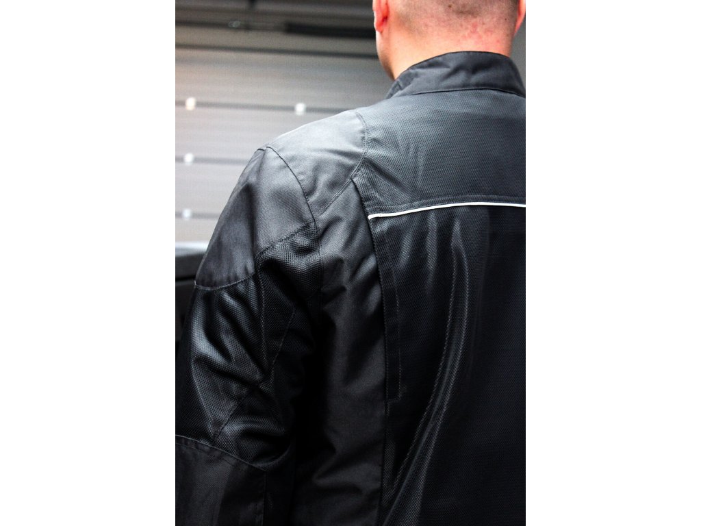 Bunda je vybavená odnímateľnými chráničmi ramien a lakťov, ktoré zvyšujú bezpečnosť pri jazde, a spĺňa normu CE Class A – čo znamená, že prešla európskymi bezpečnostnými, zdravotnými a ochrannými štandardmi pre motocyklové oblečenie.