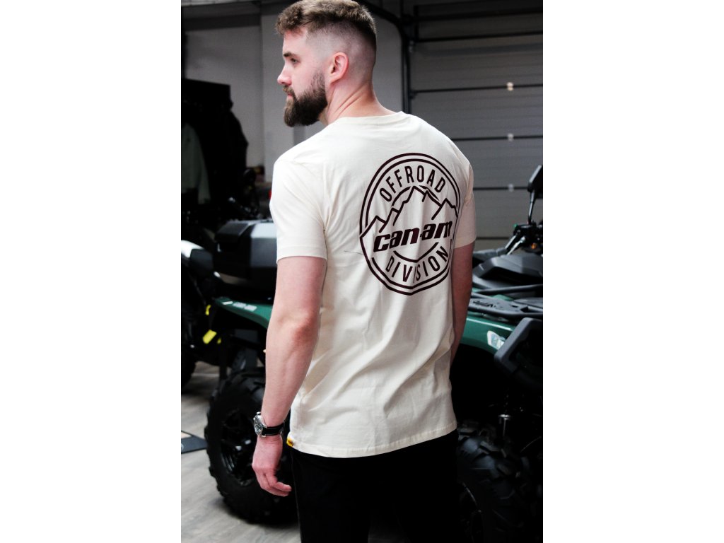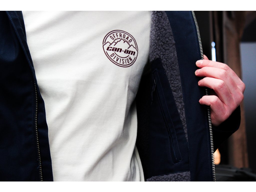 Tričko má malé logo Can-Am Off-Road Division v ľavej hornej časti hrude a veľké logo Can-Am Off-Road na chrbte.