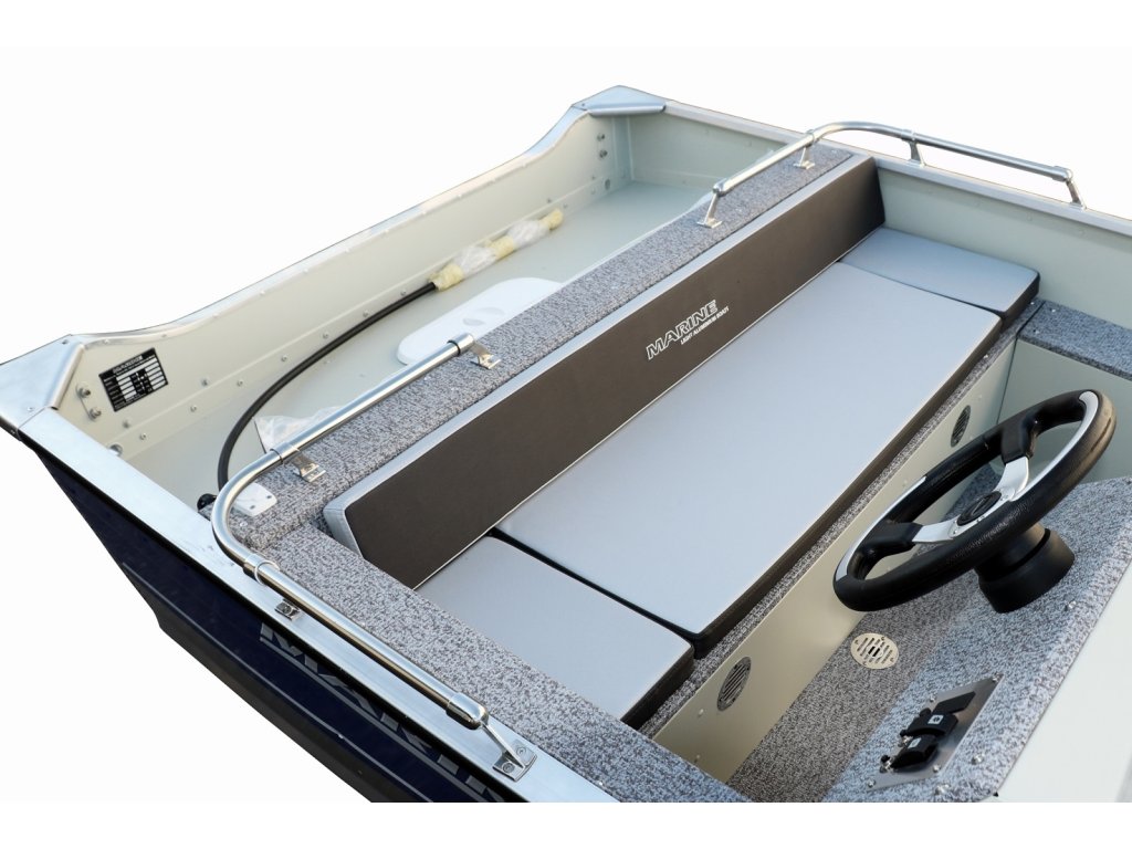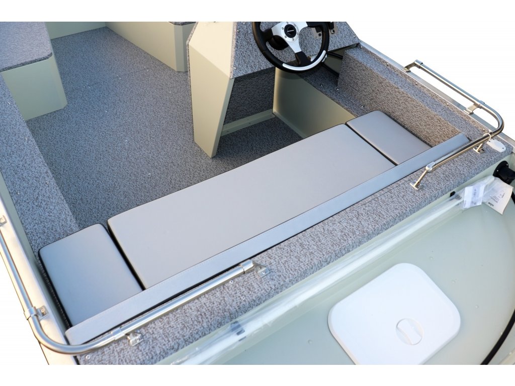 Voliteľná výbava: stôl pre pikniky na vode, sundeck na prove, čalúnenie na opaľovanie, polstrovanie provy aj kormy, nízke/vysoké predné zábradlie pre bezpečný nastup, zásuvka 12V
