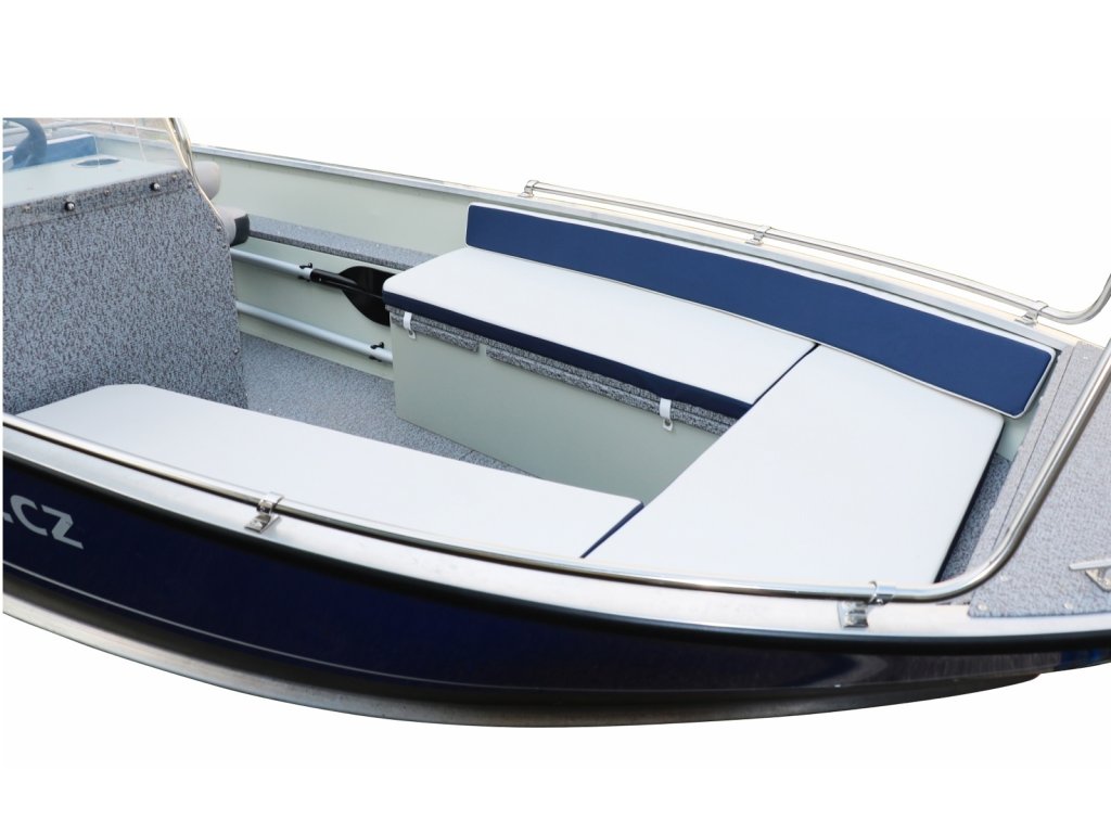 Voliteľná výbava: stôl pre pikniky na vode, sundeck na prove, čalúnenie na opaľovanie, polstrovanie provy aj kormy, nízke/vysoké predné zábradlie pre bezpečný nastup, zásuvka 12V