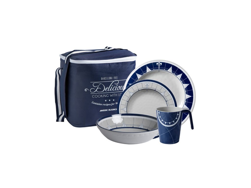 - Táto súprava melamínového riadu obsahuje košík na zips, ktorý je užitočný na uloženie riadu alebo iného námorného príslušenstva.