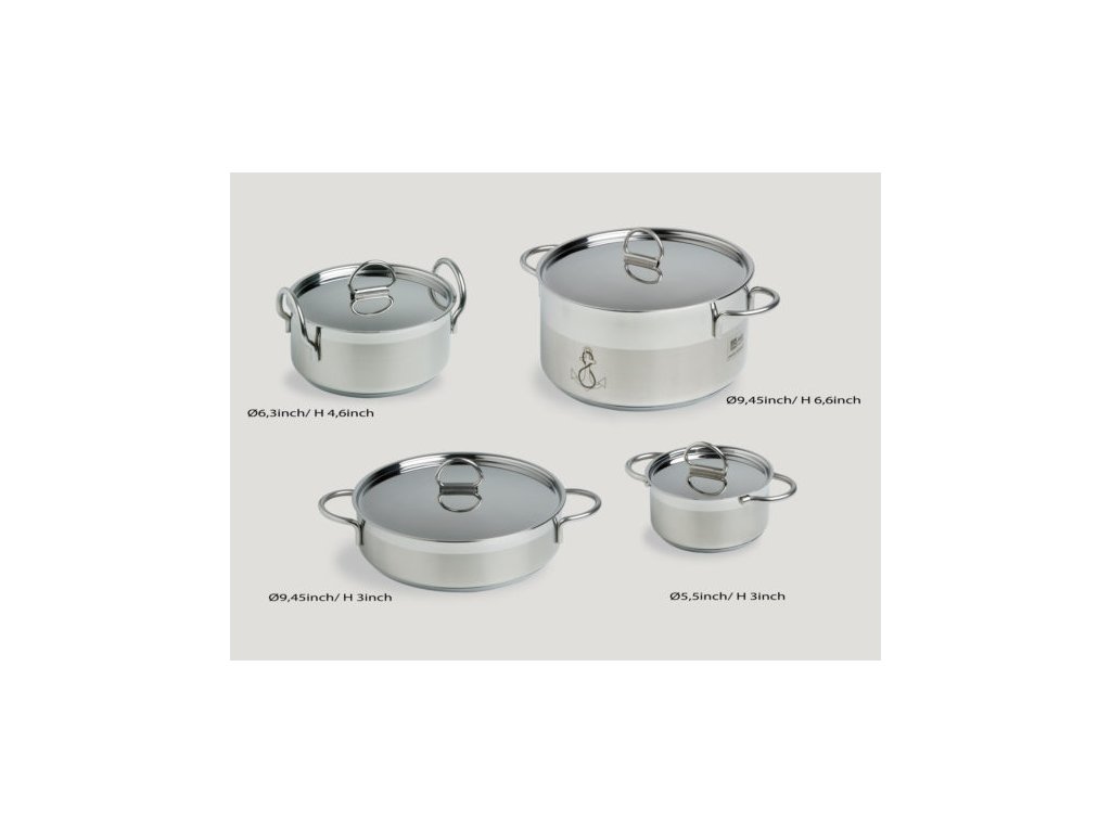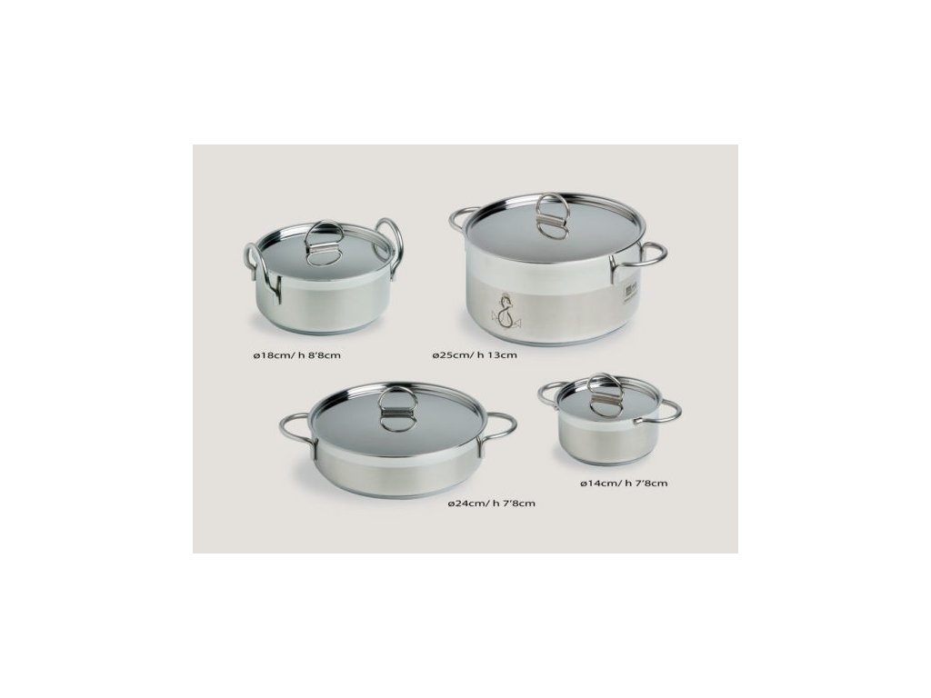 - Sada 7 panvíc je vyrobená z prvotriednej nehrdzavejúcej ocele a má dno rozptyľujúce teplo vhodné na plynovú, sklokeramickú varnú dosku a indukciu.