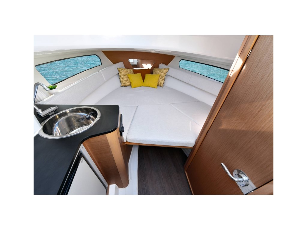 Jeho zadný kokpit ponúka dostatok priestoru a pohodlia najmä vďaka voliteľnej vonkajšej kuchynke. Vyvýšená predná paluba s matracmi s nastaviteľnými operadlami poskytuje ideálne miesto na odpočinok alebo zábavu. Kajuta pod prednou palubou sa nachádza priestranná kajuta, ktorá je vďaka veľkým oknám doslova zaliata prirodzeným svetlom. Cap Camarat 7.5 WA séria 3 je perfektné, "ultra" všestranné rodinné plavidlo, kde Vás čakajú nezabudnuteľné chvíle!