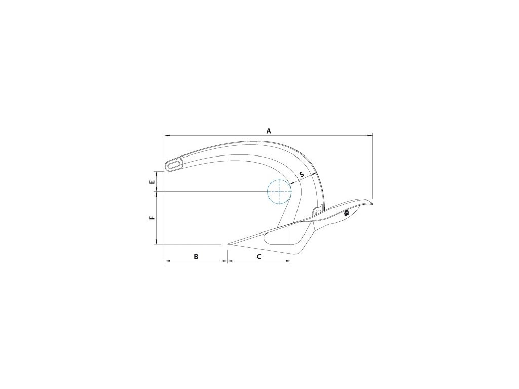 - "V-Bulb" (B) posúva ťažisko kotvy extrémne nadol a smerom ku špičke vrtule a podporuje proces zakopania. Konkávny tvar (C) zväčšuje povrch vlásenky, ako pri kotve ROCNA, a to čiastočne vedie k veľmi vysokej prídržnej sile. Špeciálny profil kotevného hriadeľa (h) a absencia ochranného oblúka (pretože to nie je potrebné kvôli konštrukcii) vytvárajú obzvlášť dobré zapadnutie do kotevných držiakov na predstavcoch a kúpacích plošinách.