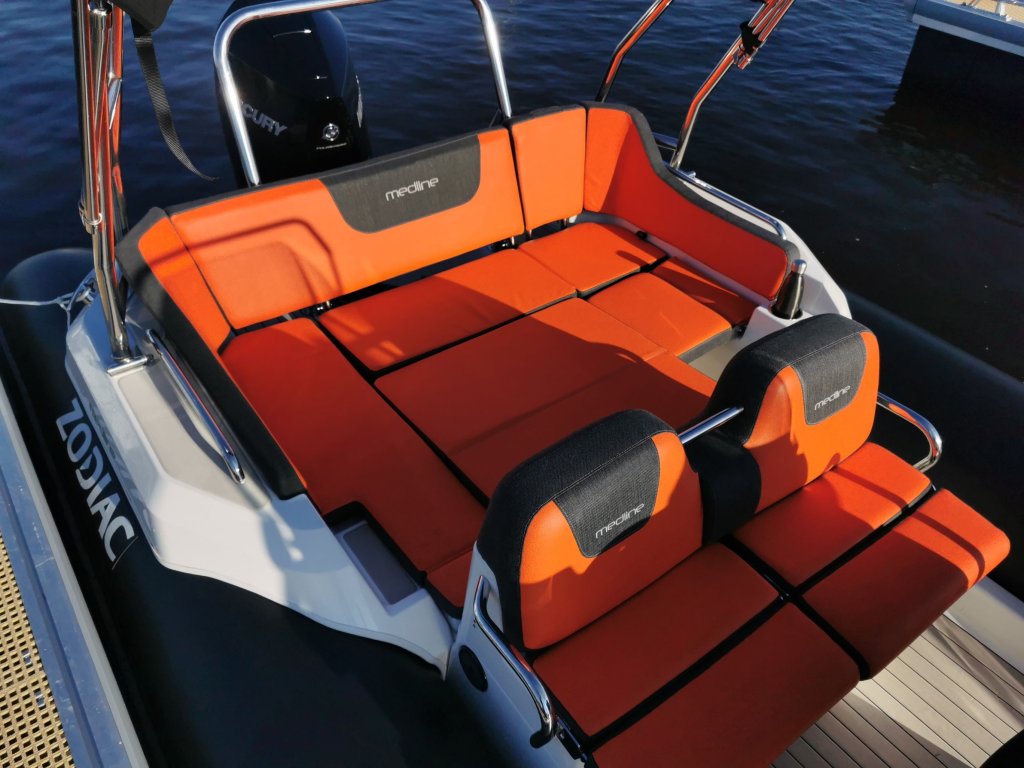 Okrem toho, Medline 6.8 má luxusné sedadlá a slnečné kreslá, ktoré poskytujú maximálny komfort pri relaxácii na vode. Záďová terasa umožňuje pohodlný prístup do vody pre plávanie alebo iné vodné aktivity. Ochranná podložka na prídi zvyšuje bezpečnosť a chráni loď pred poškodením pri kotvení.