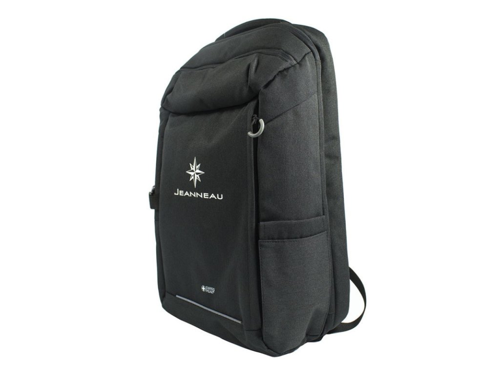 Bočné vrecko na fľašu s vodou a USB výstup. Horné vrecko na rýchly prístup, predné vrecko na zips a vrecká chránené RFID.