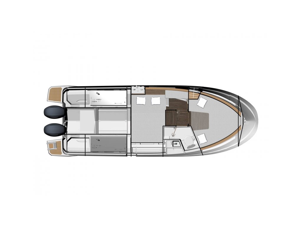 - výbava PREMIERE (elektrický kotevný naviják, matrace a operadlá v kokpite, chladnička 60L, sprcha v kokpite, elektrické trim klapky, ambientné LED podsvietenie salónu, kajuty a kokpitu, sedenie nad WC, úložná sieťka pod volantom, zadné laminátové kúpacie platformy)