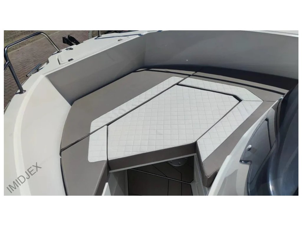 Dobre navrhnuté usporiadanie paluby modelu QX550 zahŕňa pohodlné sedadlo pri riadiacej konzole a dostatok voľného priestoru okolo centrálneho ovládacieho kokpitu, čo uľahčuje pohyb a vnímanie nádhernej scenérie. Navyše vďaka pohodlnej zadnej lavici a dostatočnému množstvu úložných priestorov budete mať všetko potrebné na dosah ruky.