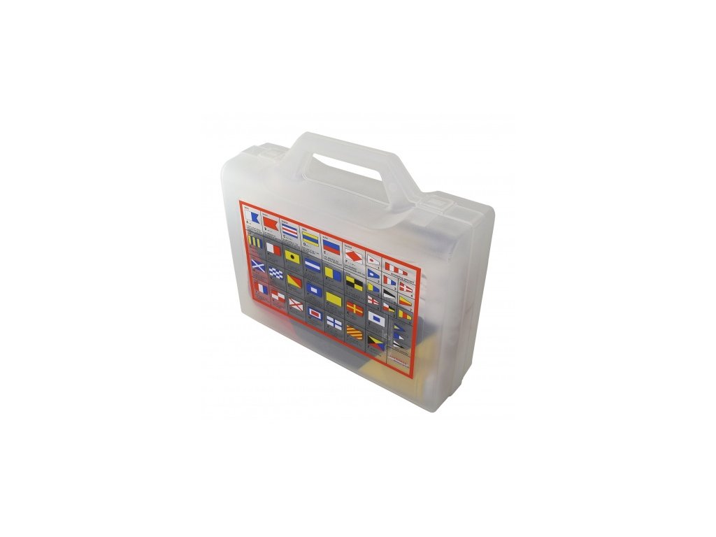 Signálne vlajky, obsahujúce 40 vlajok (A-Z, 0-9, 1. - 3. náhrada a odpovedajúca vlajočka) spolu v plastovom boxe