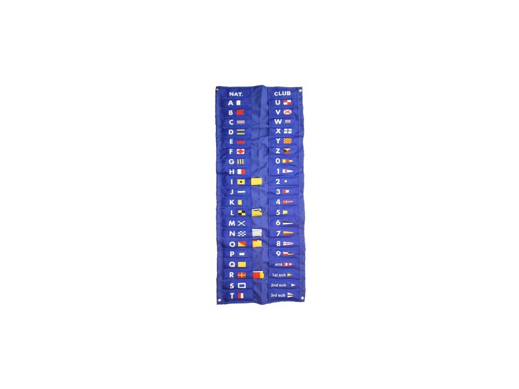 Signálne vlajky, obsahujúce 40 vlajok (A-Z, 0-9, 1. - 3. náhrada a odpovedajúca vlajočka) spolu s nylonovou taškou