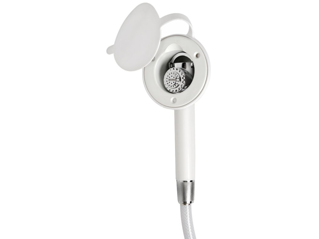 Vyrobené z chrómovanej mosadze, vybavená bielym ASA držiakom odolným voči UV žiareniu a bielym PVC vodotesným vekom.