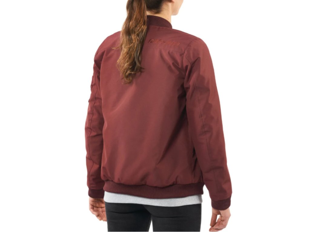 Dámska ľahká motorkárska bomber bunda vo farbe Burgundy, s certifikáciou CE.