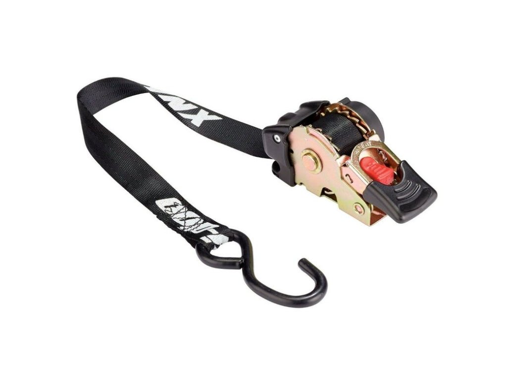 Pevnosť a medza pevnosti 1 500 lb (680 kg). Pohodlné zasúvacie tlačidlo automaticky povoľuje, navíja a ukladá popruh, pričom západkový mechanizmus pevne utiahne popruh na zaistenie vášho stroja alebo nákladu na miesto.