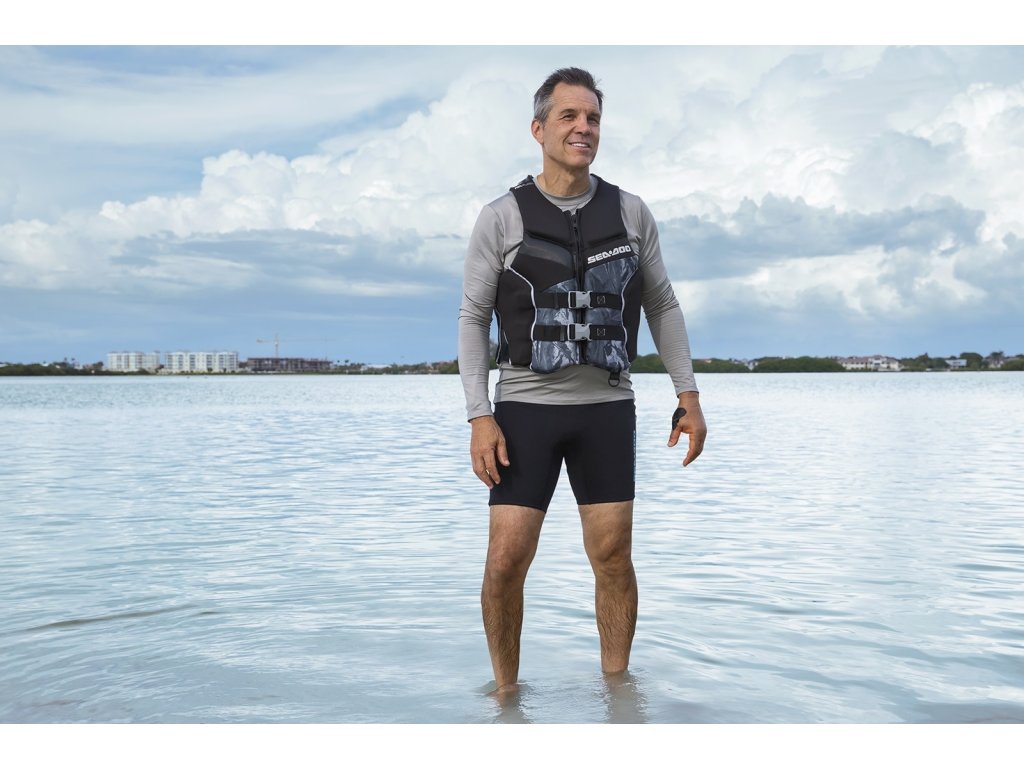 Novinka pre sezónu 2022! Špičková záchranná vesta Sea-Doo Airflow Refraction z ultraľahkého, rýchloschnúceho materiálu EcoPrene, spája funkčné vlastnosti nylonu a výkonné vlastnosti neoprénu. Vesta neobsahuje žiadne PVC, je ekologická a vyrobená v zmysle princípov udržateľnosti. Ultraľahká aj za mokra, s maximalizovaným prúdením vzduchu vďaka systému Airflow. Extra penové polstrovanie minimalizuje tlak na spodnú časť chrbta a zároveň zvyšuje jeho podporu. Sieťovina v spodnej časti vesty pomáha evakuovať prebytočnú vodu pre rýchle schnutie a tepelne regulovaný komfort.