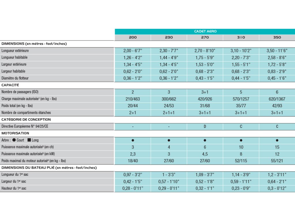 Dostupné v 5-tich veľkostiach CADET AERO 200/230/270/310/350
